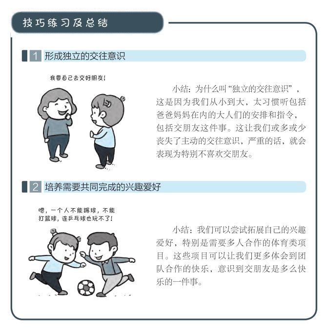 三个环节下来,不论是想和人交朋友却又不好意思的孩子,还是真心对社交感到压力、只喜欢独处的孩子,都能从书中找到简单易懂、通俗可行的解决方法!
