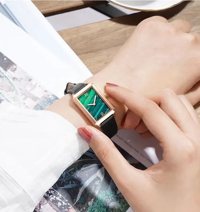 又是一款孔雀石的腕表,却比小方盘显得活泼了几分。