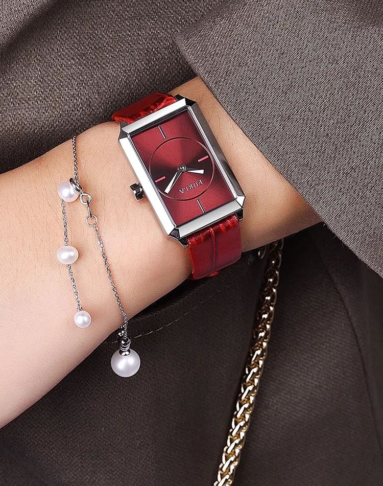 这款Diana系列酒红色典雅时尚方形女士石英表,一出场便注定了它要吸引所有人的目光。