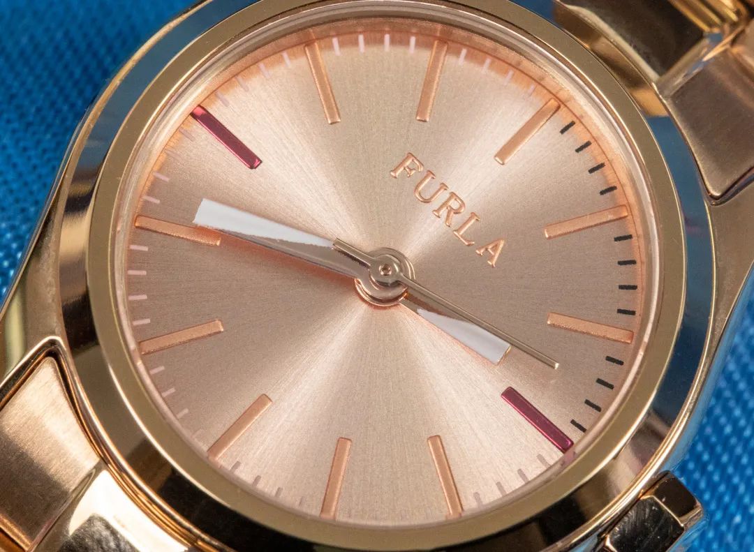 表盘上深浅交织的流动纹路,好像是Furla与光影故意玩的游戏,生动又趣味十足。