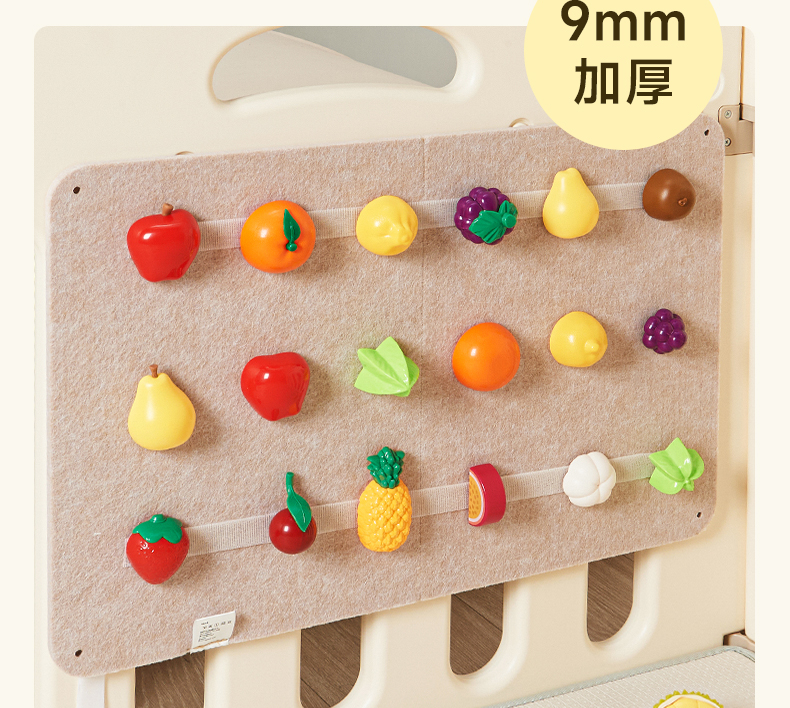 切好的“蔬果”带着魔术贴,可以直接“粘”在毛毡板上展示!宝宝可以自由创作“蔬果拼盘”、“今日菜单”,打造专属迷你“展示墙”或“小厨房”!空间利用满分,玩法无限延伸!