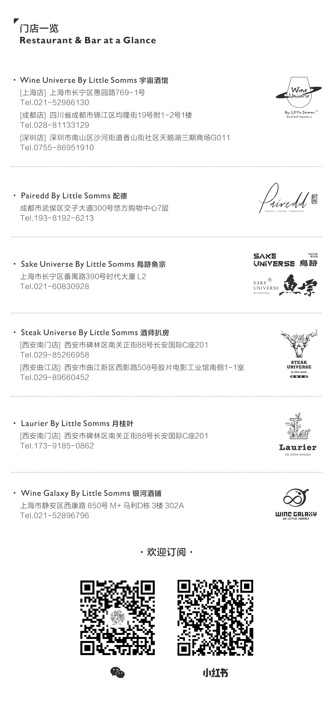 BLS(By Little Somms)餐饮集团由国内顶尖侍酒师团队与专业名厨阵容构成,起源于一间坐落在上海愚园路上的宇宙小酒馆。自创立以来,不断探索精进餐酒文化并逐渐在多所城市进化出丰富多元的餐饮空间、酒铺电商及衍生周边。