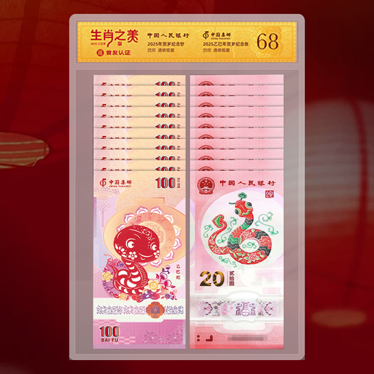 为此,小钱特地带来中国邮政审批,中国集邮权威发行的2025蛇年纪念钞券套装。这一套不仅发行权威,还能轻松实现蛇钞、蛇券配套收藏!