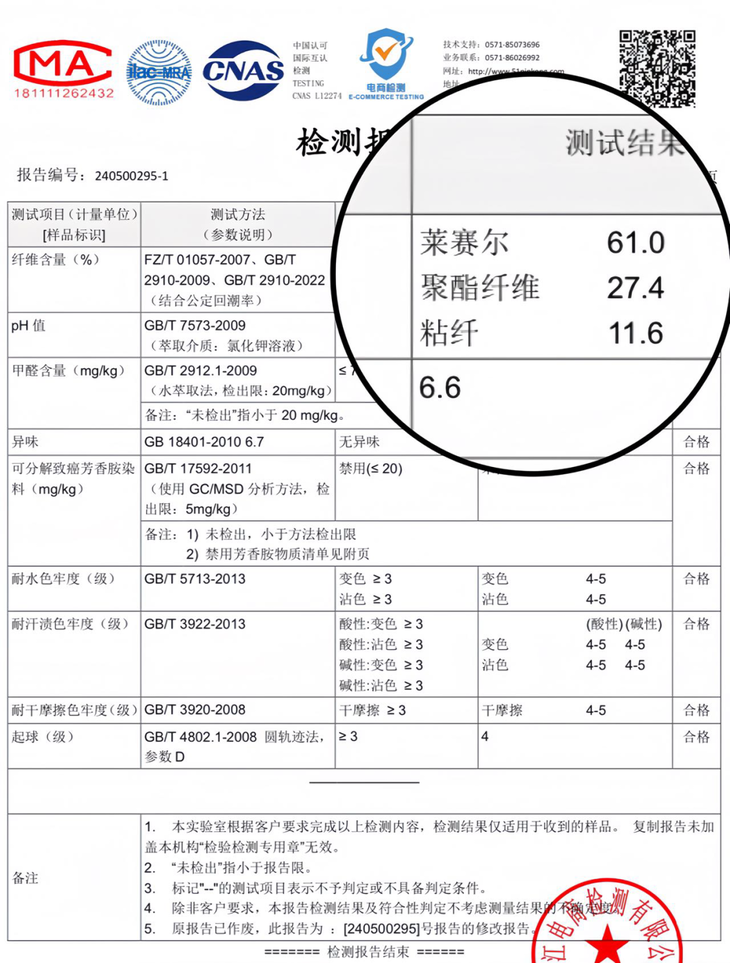 60%自带凉感的天丝面料(又称:莱赛尔天丝面料)。