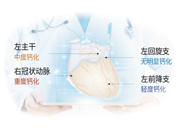 睿心宝-冠心病风险指数评估系统适用16排及以上CT设备,低剂量胸部平扫,并通过最新的人工智能技术对扫描结果精准计算,从而分析出冠状动脉钙化情况。并结合年龄、性别等个人因素,运用钙化积分的方法分析出体检用户患有冠心病的潜在风险。