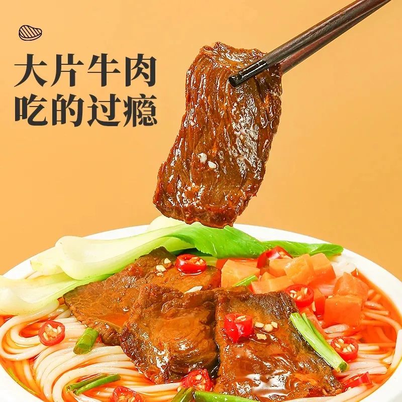 410g的包装里有鲜熟米粉包,牛肉调料包等,精选牛骨,17味卤料精细配比,还有大块黄牛上脑肉,多汁软嫩、浓郁入味,一秒入魂!