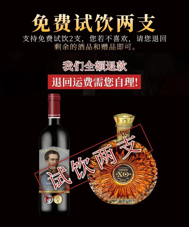 更重要的是:可以免费试喝2瓶(一瓶干红/一瓶XO),不满意直接退,我们给您全额退款!