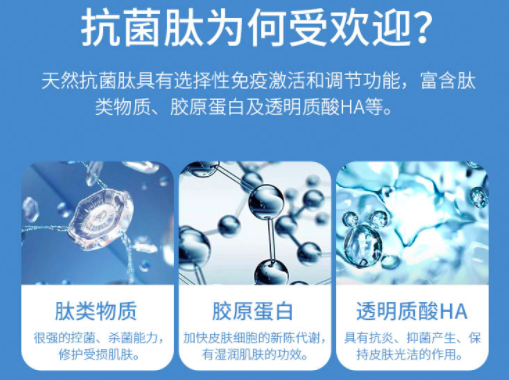 ①肽类物质:具备强大的亢菌、sha菌能力,修护受损肌肤