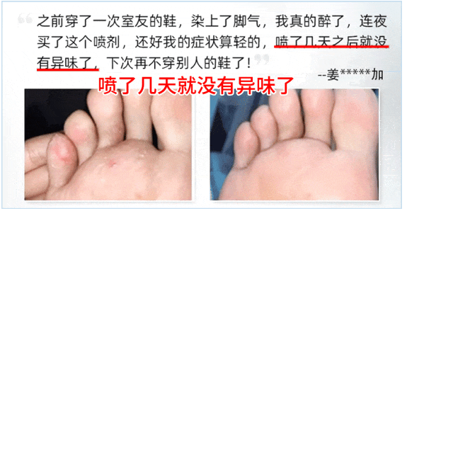 它不仅能喷脚,还能喷鞋、喷袜子,一喷就能快速赶走臭味、止羊、止疼,舒服一整天!