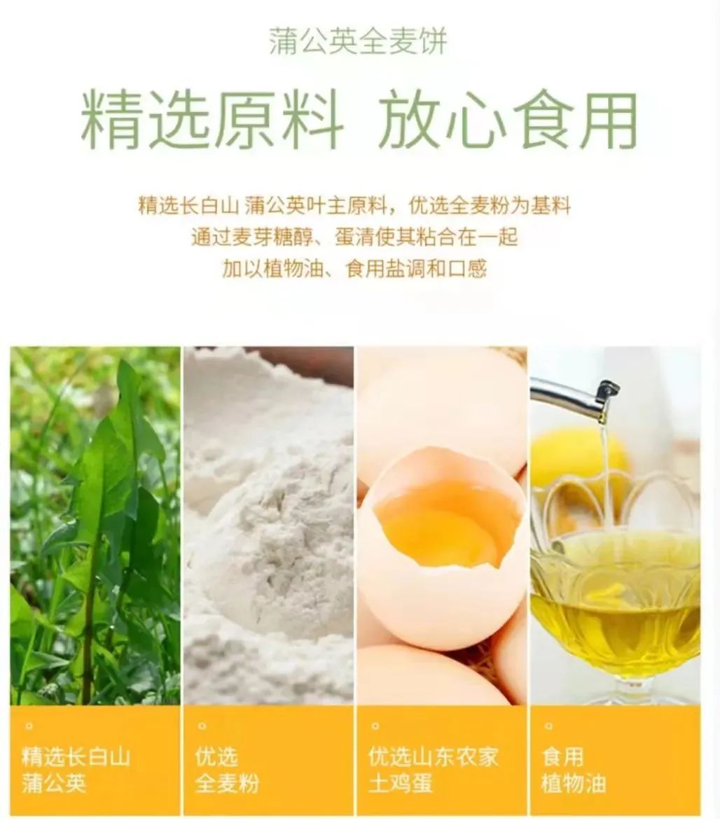 蒲公英全麦饼干选用长白山新鲜蒲公英为原料。