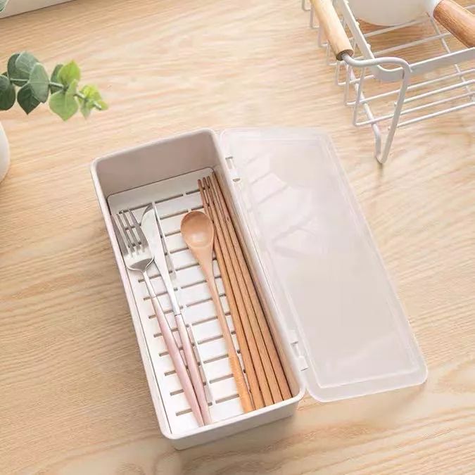 最好用镂空的小框,垫一张厨房纸巾,把筷子勺子平整的摆进去即可。