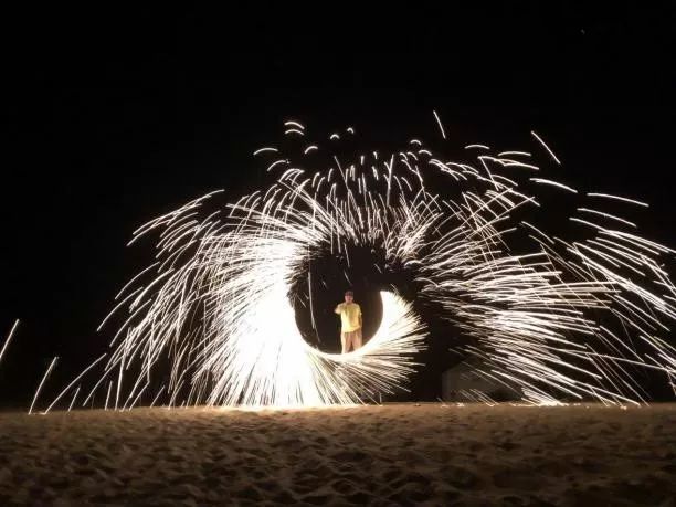 晚上九点半开餐,我们几个从山顶上手拉手冲了下来,一不小心摔了一跤,虽然吃了一嘴的沙子,但心里有另一种说不出的开心。