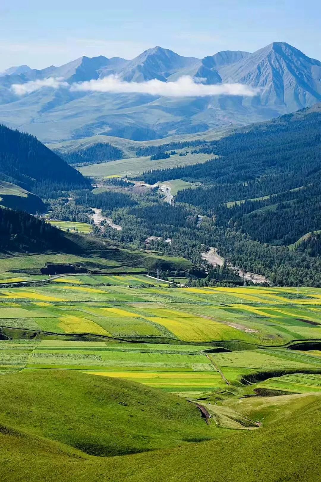牧草返青,漫山遍野的油菜花次第盛开,黄、绿、蓝三种色调会将天地间的一切空隙填满,在平坦的公路上,在流动的花海中,在一片如梦似幻的蓝色空间里,纵情驰骋。