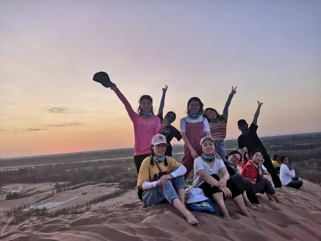 到达山顶,沙漠的夜是真的冷,我们几个席地而坐,相互依偎,相互取暖,大家说说笑笑,彼此调侃。想都没想过,一宿不睡,和小伙伴们一起爬这么高的地方,做这么疯狂的事情,估计这辈子也就这么一次了吧!
