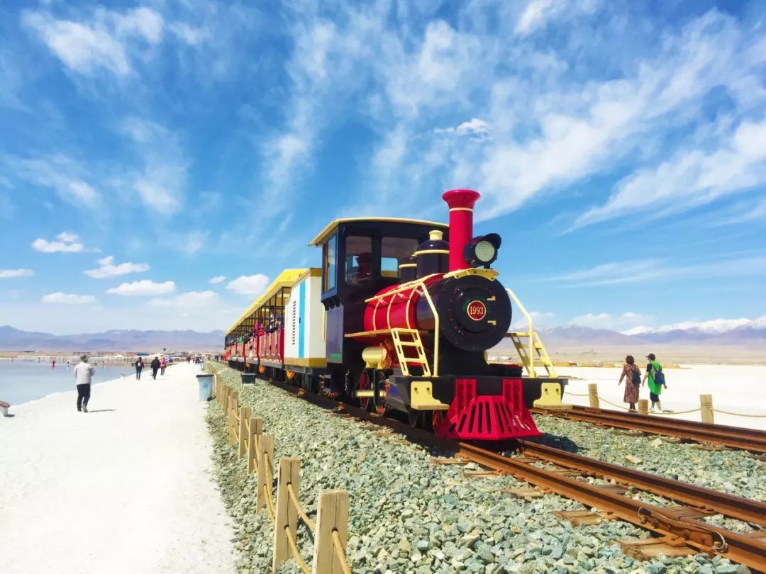 风和日丽的日子,茶卡的湖面具有极强的反射能力,能看到清晰的倒影。如此罕见的奇观,令无数人趋之若鹜。乘着小火车深入湖中,湖面辽阔,景色宜人,银波粼粼,如诗如画。