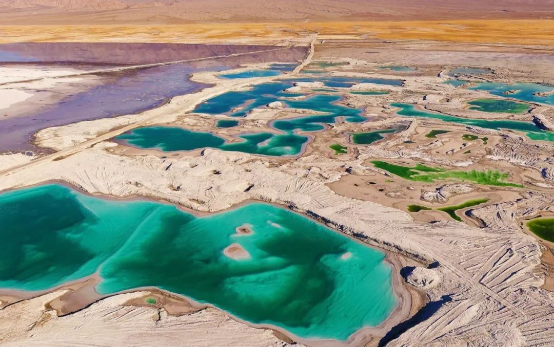 这里不像茶卡盐湖是一整片盐湖,大大小小的盐池,每个都仿佛有着自己的性格和特质,这个绿一些,那个蓝一些。换个角度、换个时间,就发现不一样的美。