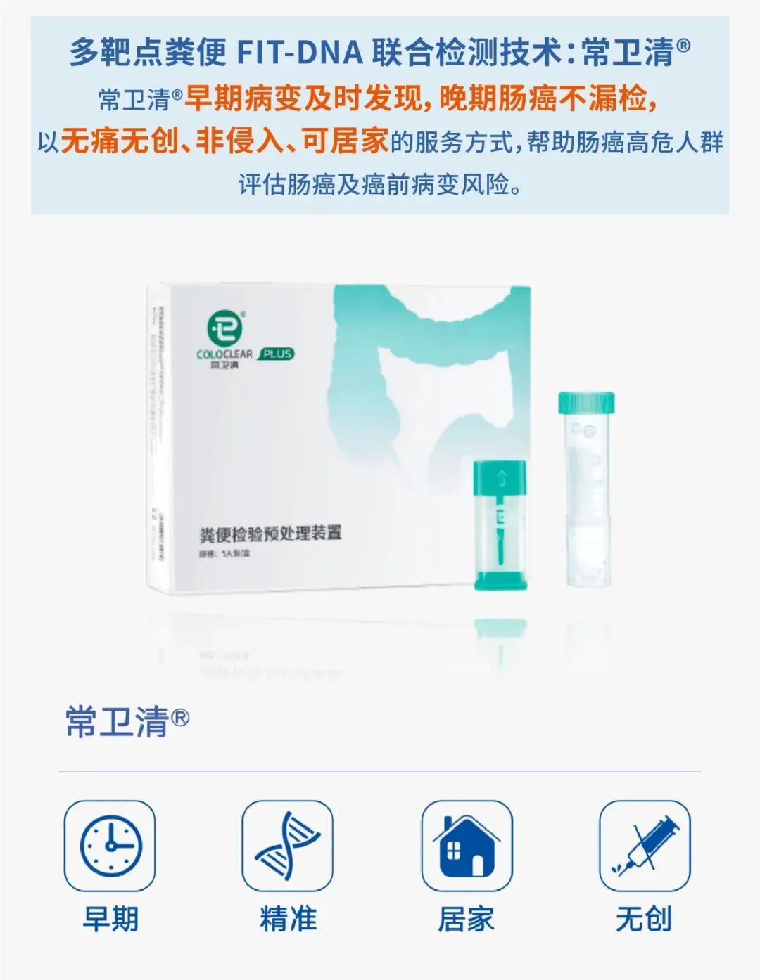 为此爱康集团引入了多靶点粪便FIT-DNA联合检测技术常卫清®,居家检测,无创无痛,方便快捷。