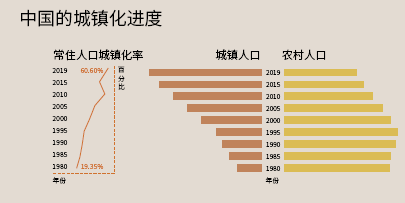 而且数据很新,中国的城镇化进度,图表数据都更新到了2019和2020年。