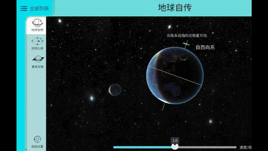 最震撼的是自然地理,地球公转示意,课本上就划几条线,这款App直接虚拟还原。太强大了!