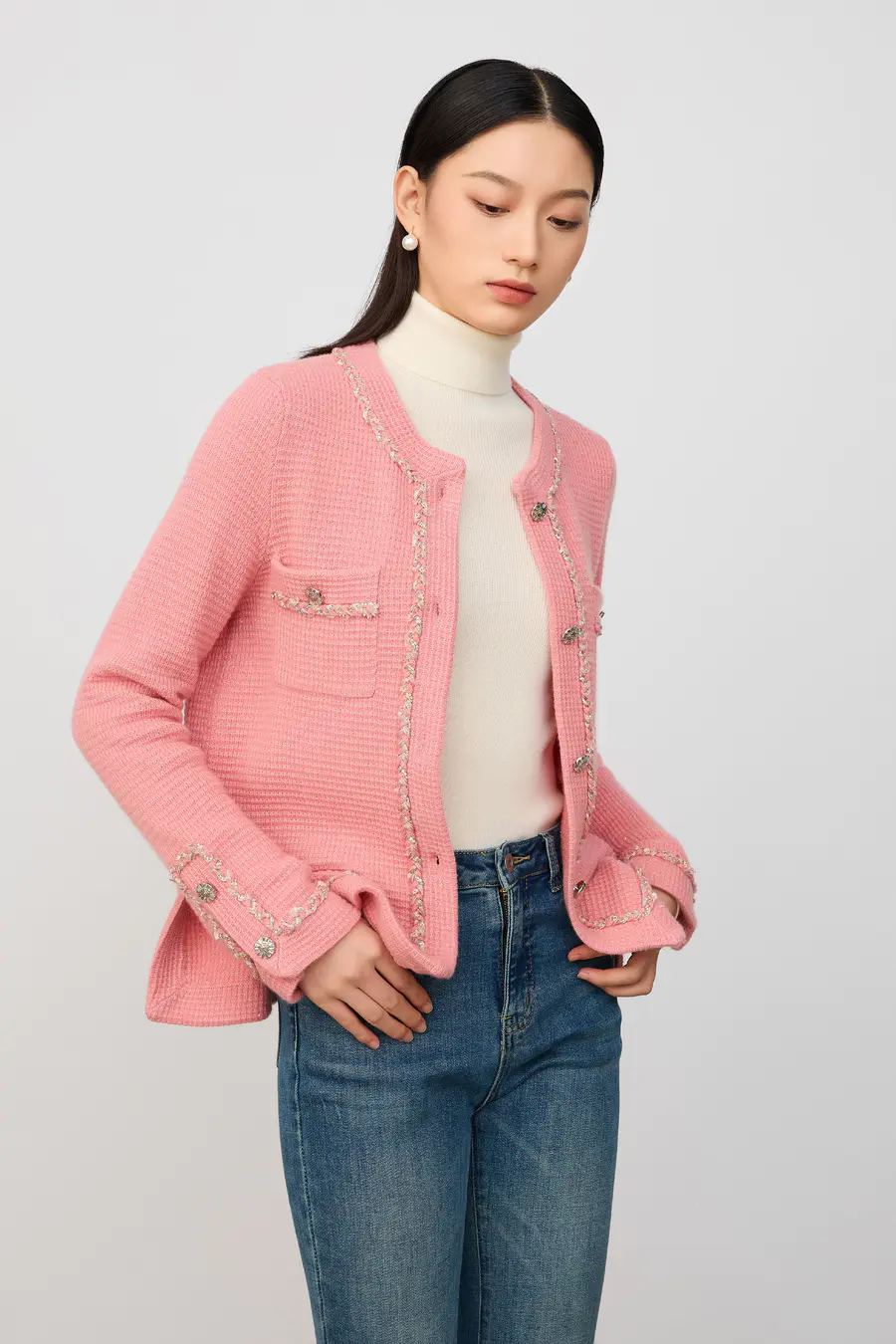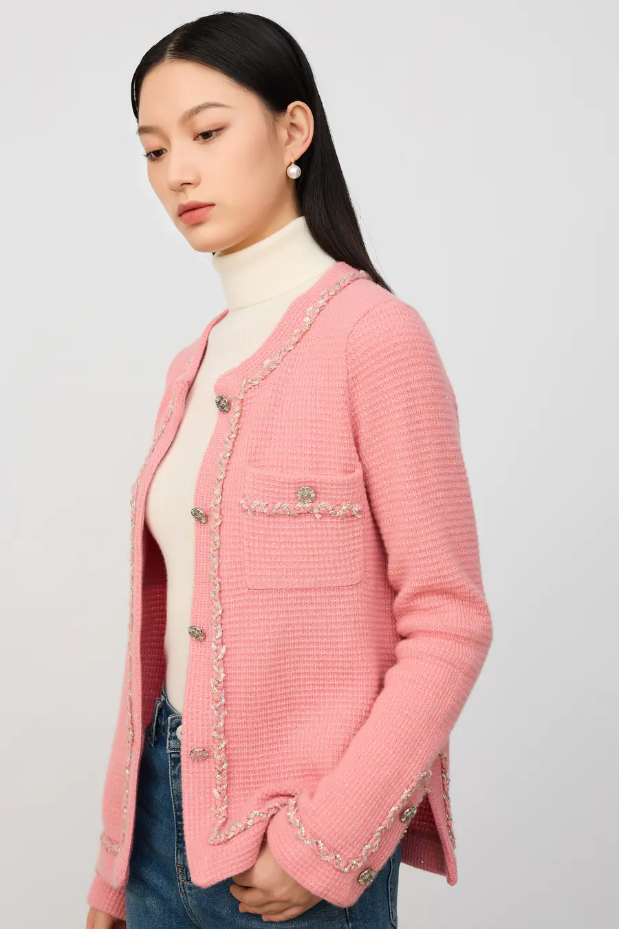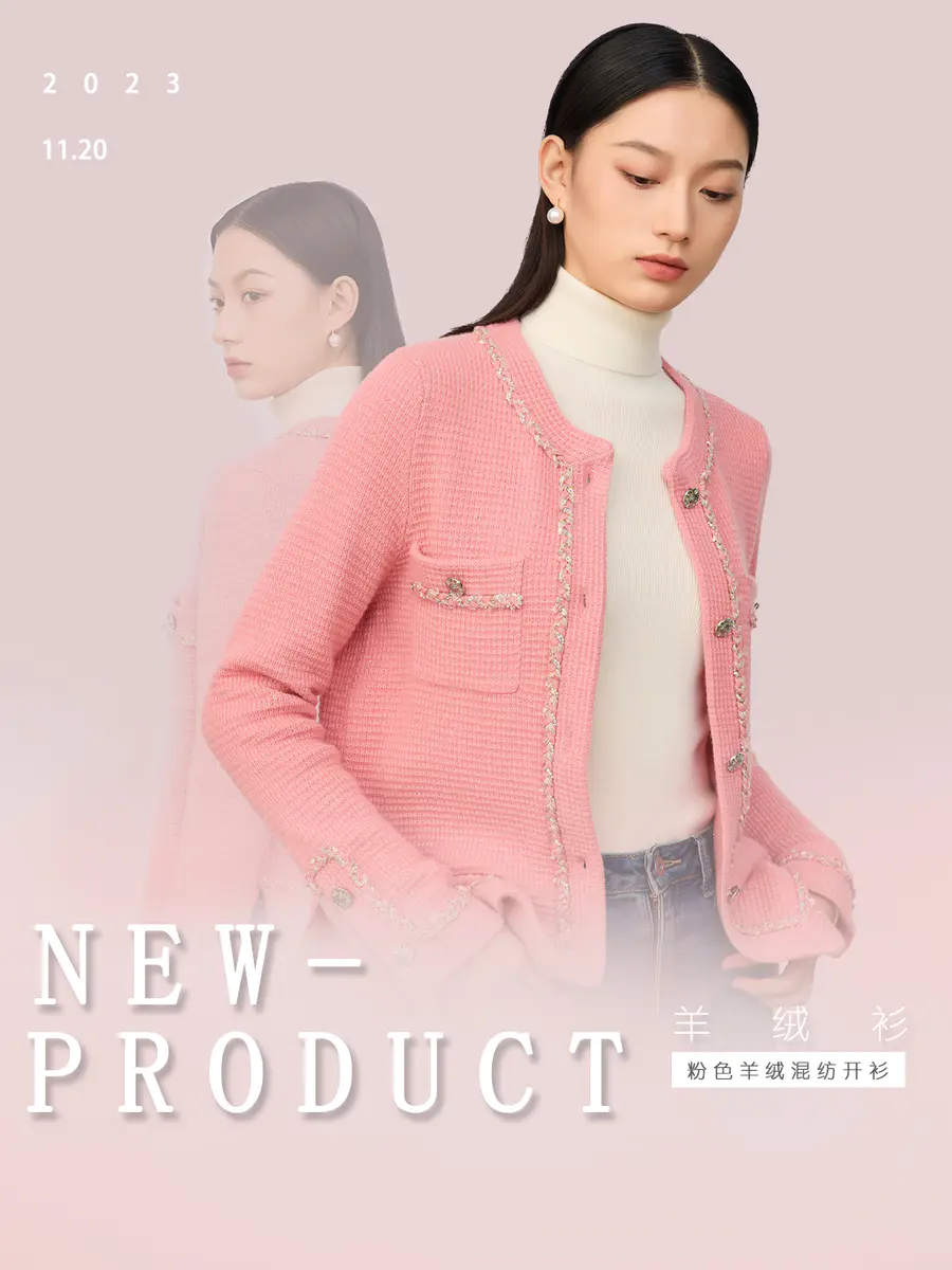 粉色开衫的优雅