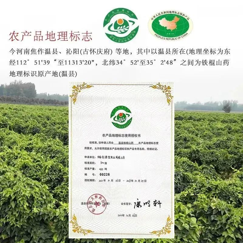 < 今河南焦作温县、沁阳(古怀庆府) 等地,其中以温县所在(地理坐标为东经112’51'39“至11313'20",北纬34°52'至35’248”之间为铁棍山药地理标识原产地(温县)>