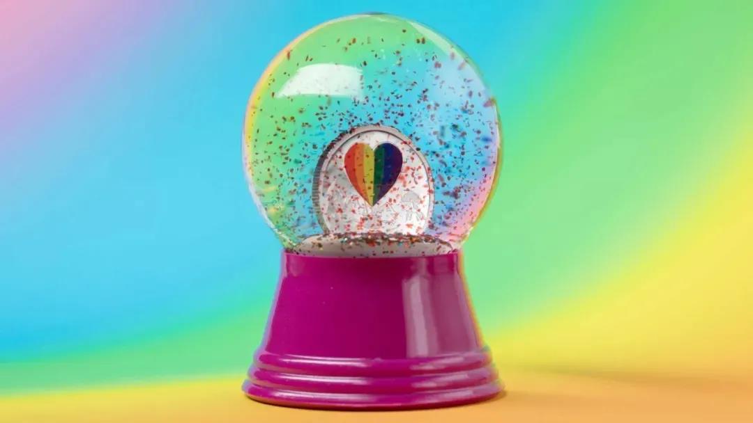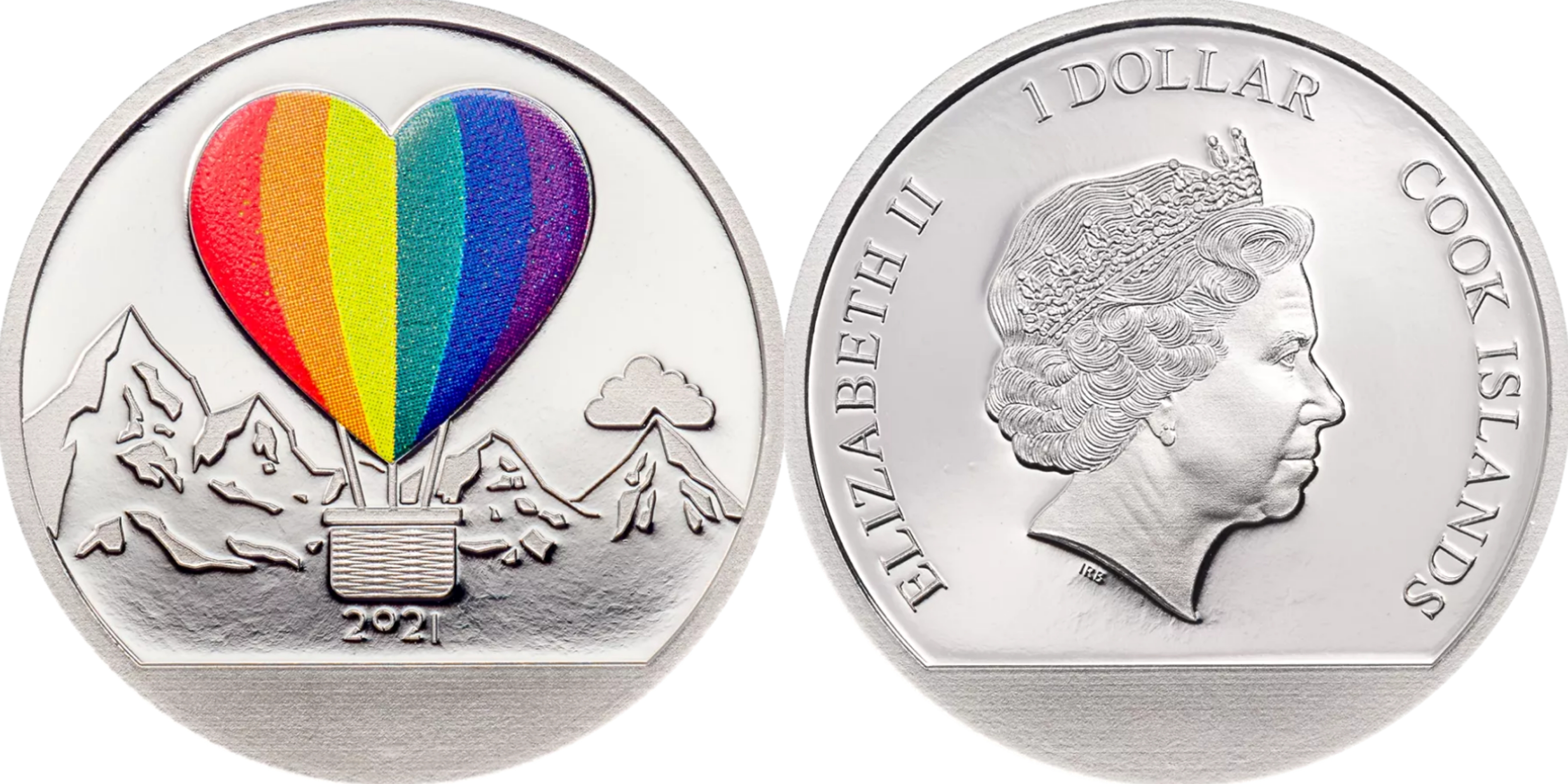 浪漫的水晶球里,包裹着一枚银币。仔细观察,银币背面正中间漂浮着的彩虹色的心形热气球非常的亮眼!