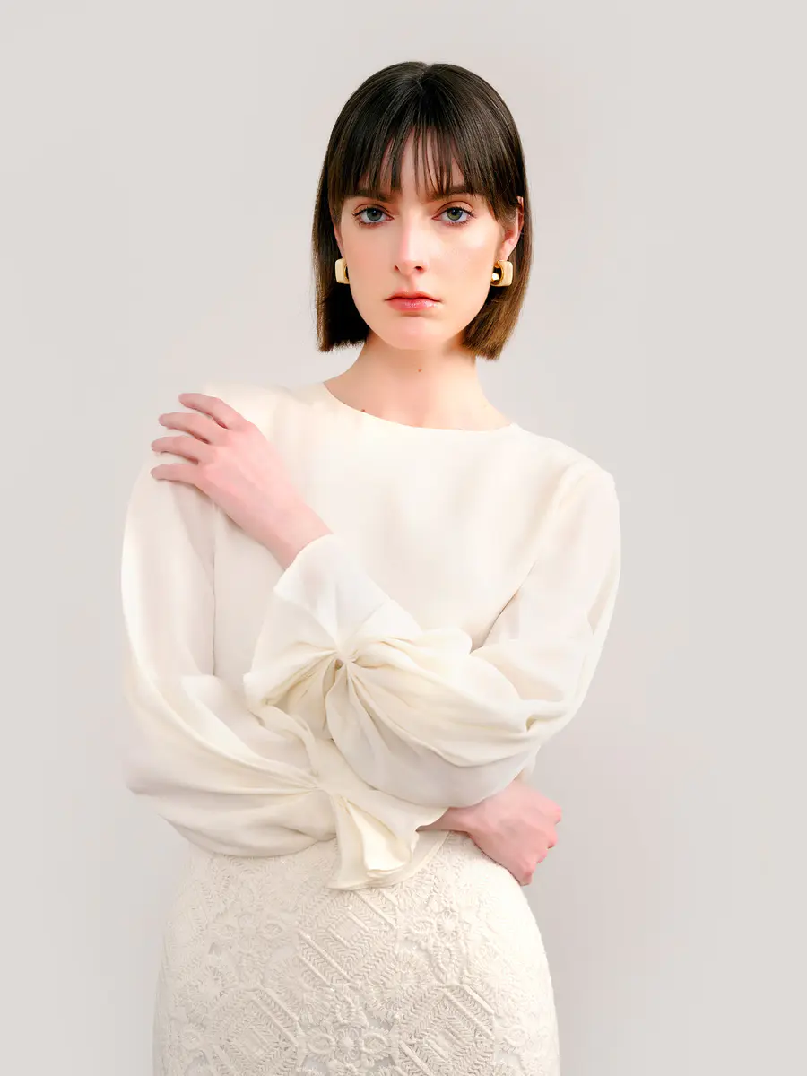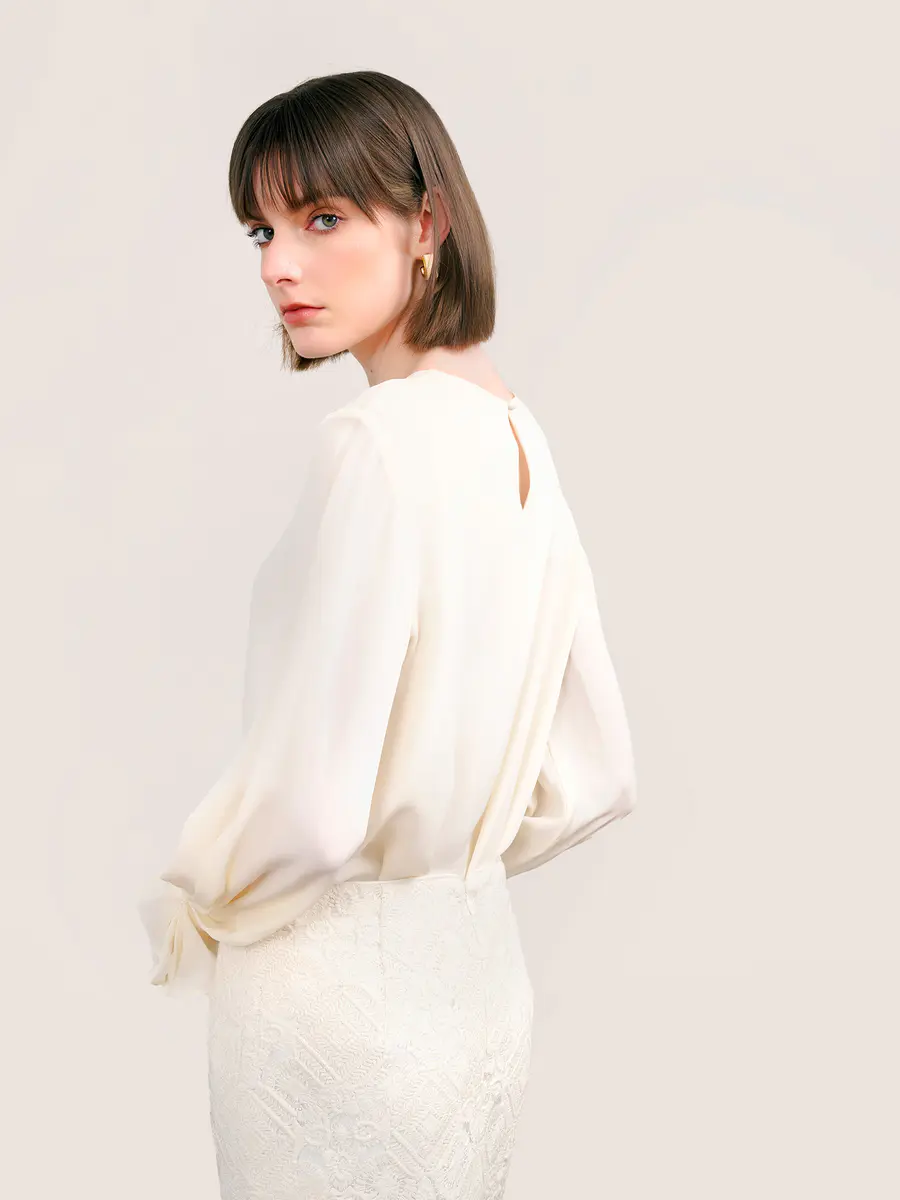 桑蚕丝圆领衬衫|复古荷叶袖