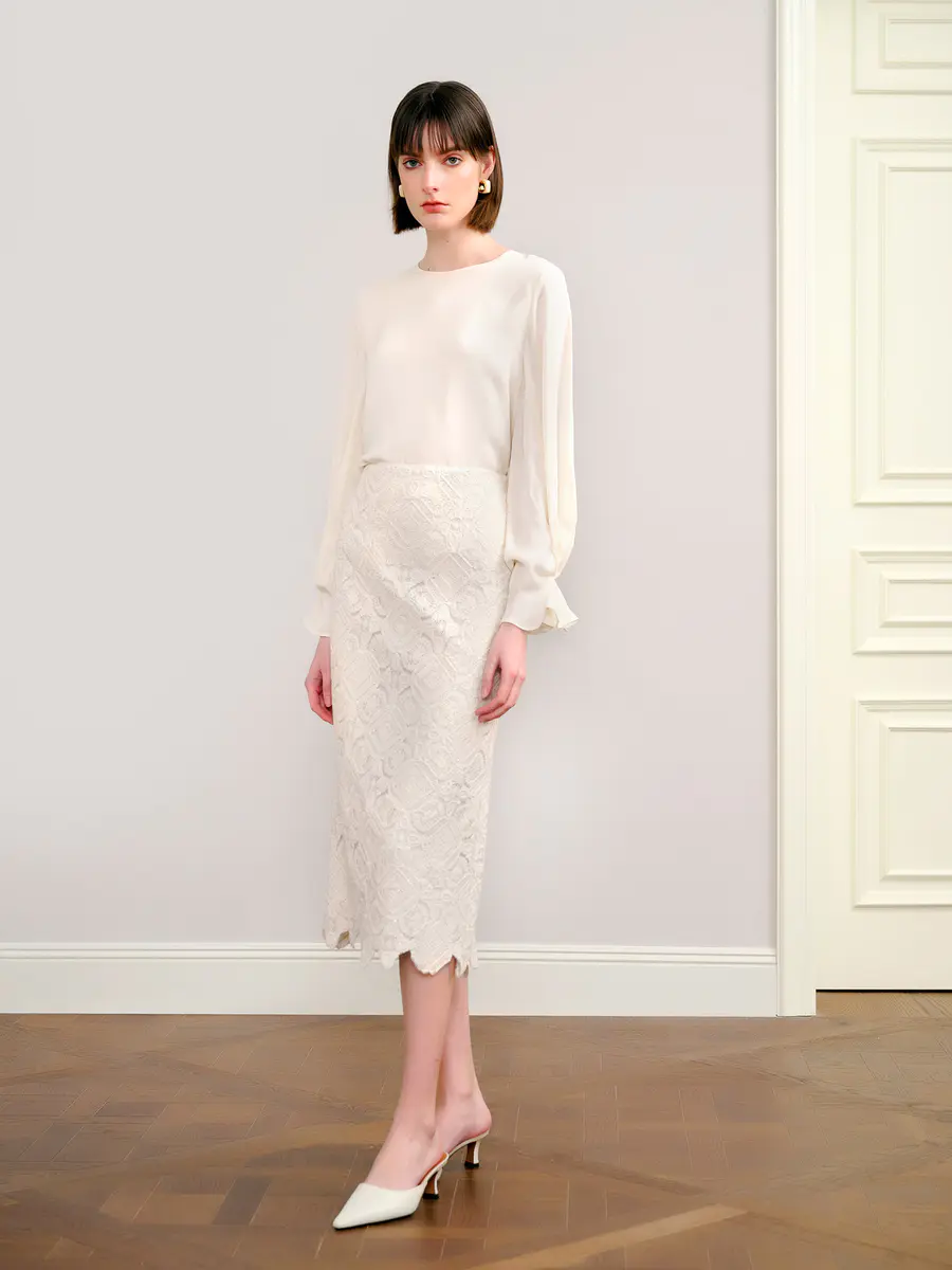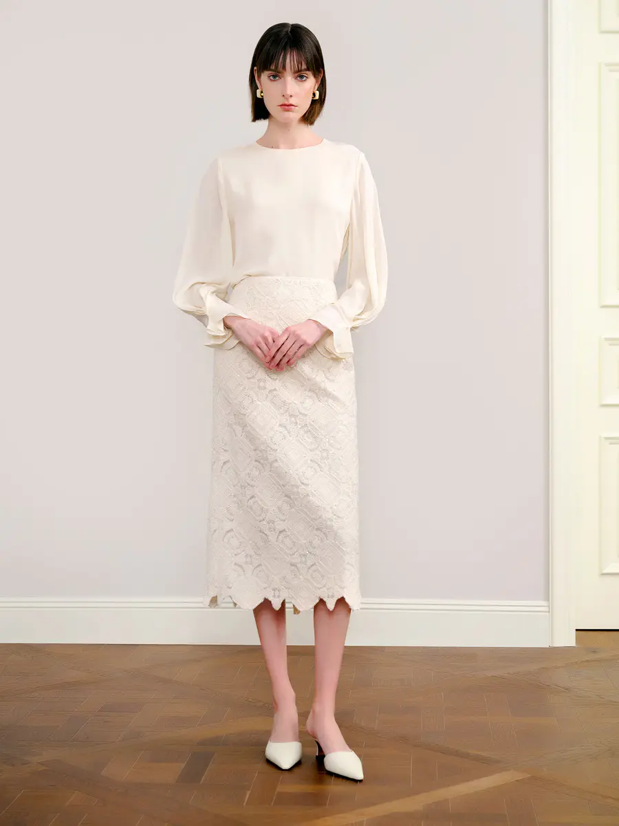 搭配蕾丝直筒裙