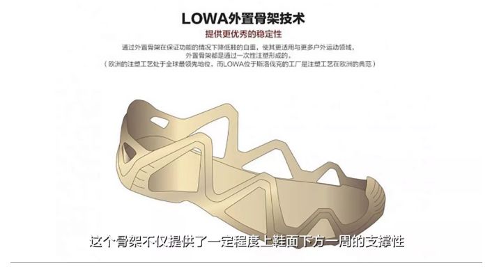 LOWA ZEPHYR军靴独特的外置骨架注塑技术,能够提升鞋面的稳定性和两侧支撑力。