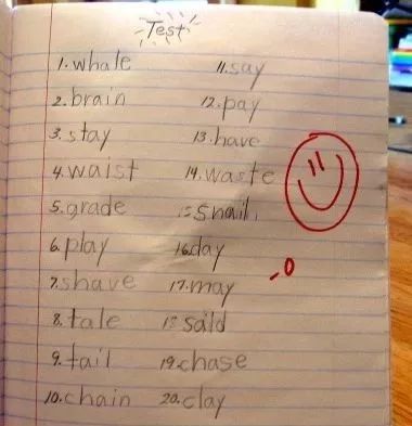 也可以让孩子在自己写作的时候,就在不确定拼写的单词下面做一个记号,老师批改好写作后重点来看这些单词的拼写。