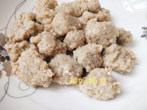3.肉糜不稠不稀状态,用勺子或者虎口挤出都可以,凉水下锅,中小火,飘起来即熟