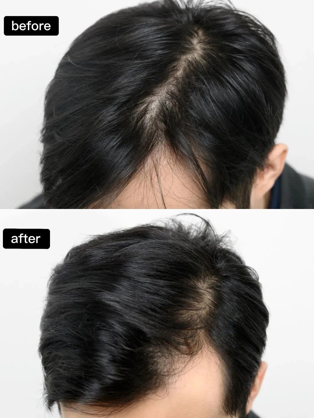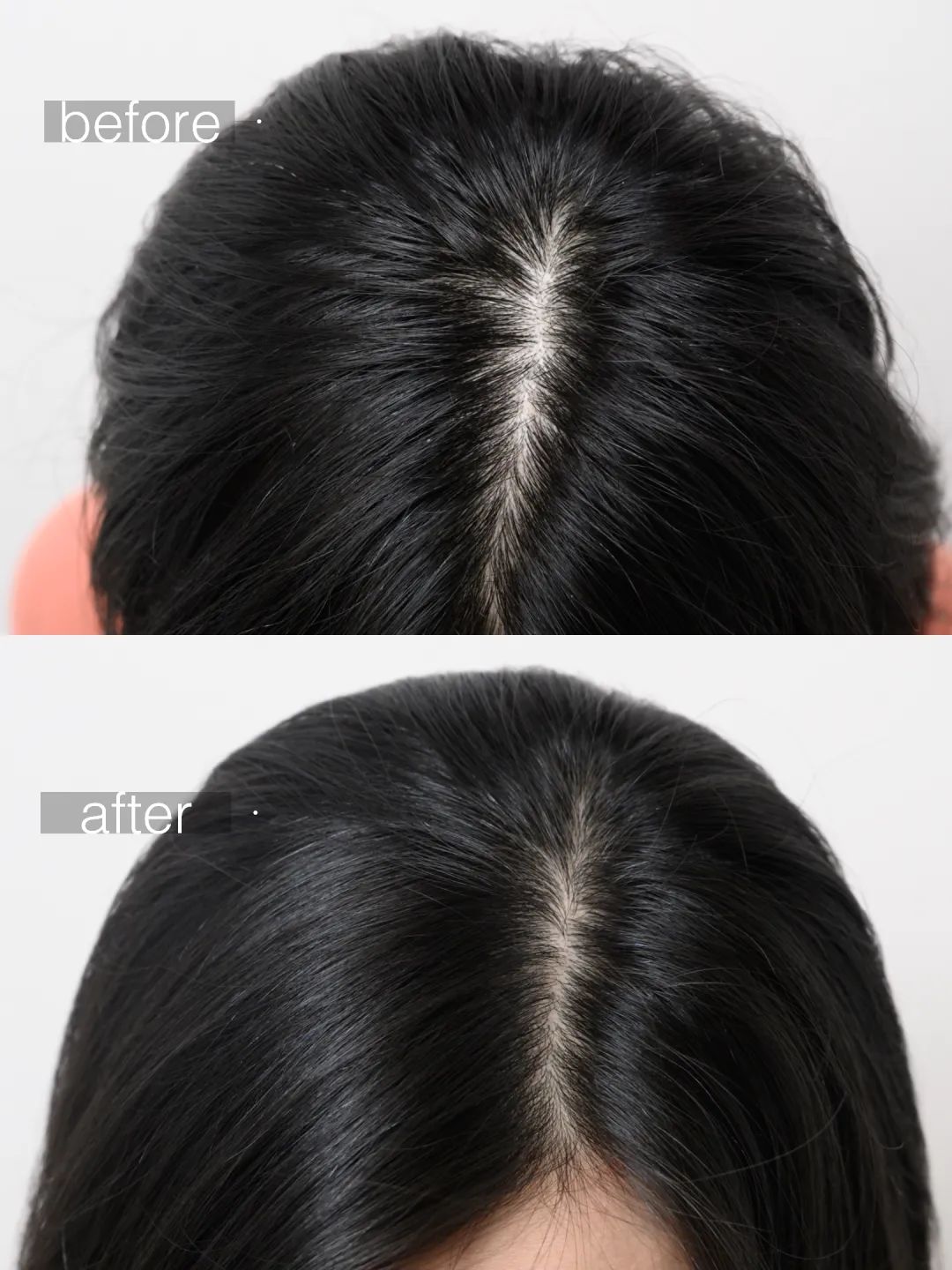 用它家的妙处就在于feel到头皮水油的改变,另外可能是蓬松可能是固发到位,你会觉得头皮白线的面积在减小。*真人实拍,效果因人而异