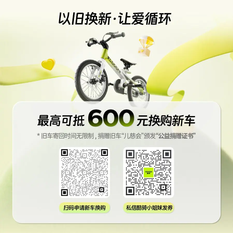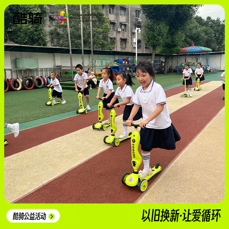 妈妈们购买酷骑后,孩子长大可以通过“以旧换新”提前享受酷骑新车,旧车闲置后再捐给更需要的孩子,一辆车车循环使用~