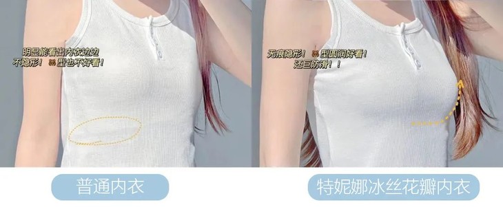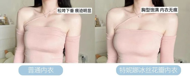 以往穿内衣最小码都差强人意,但换了特妮娜这款冰丝内衣,一整个“平地起高楼”,立马从a变成b!