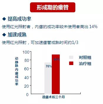 1、采用舱室特定的640nm红光,可促进成纤维细胞和内皮细胞生长,促进内瘘术后愈合,及动静脉瘘的形成和成熟;