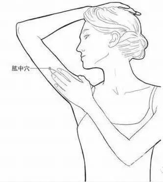 肱中穴,在大臂内侧,腋窝下与手肘中间点,按摩此穴,能加快代谢速度,排出平时堆积在大臂内侧的废物,促进脂肪消耗,使手臂变得纤瘦。以拇指圈状按摩即可,是很轻松的按摩穴位减肥方法。