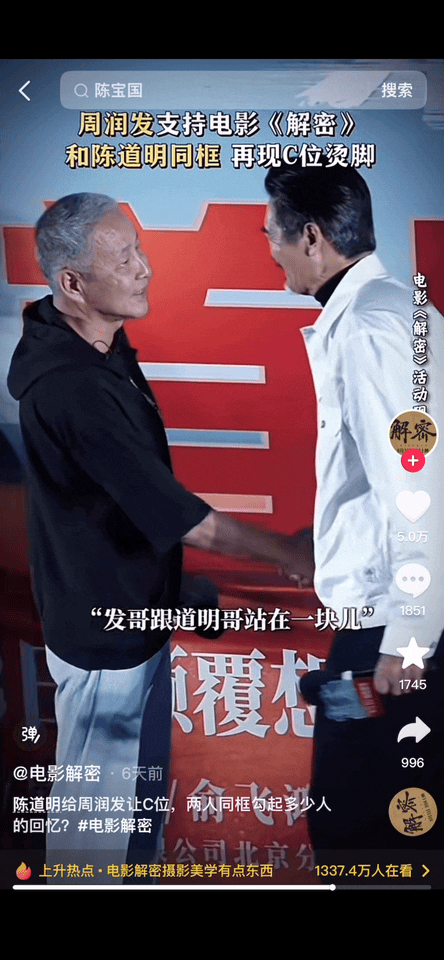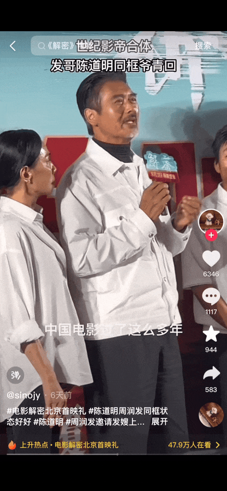 电影《解密》的首映礼上,陈道明、周润发这两大巨星竟来了个“世纪同框”!