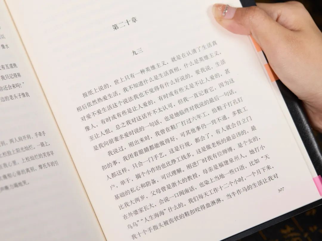 董卿在阅读时,则反复标记,在书上贴满标签,还在节目里含泪朗读过。