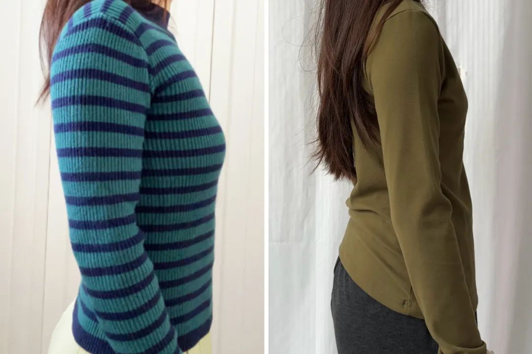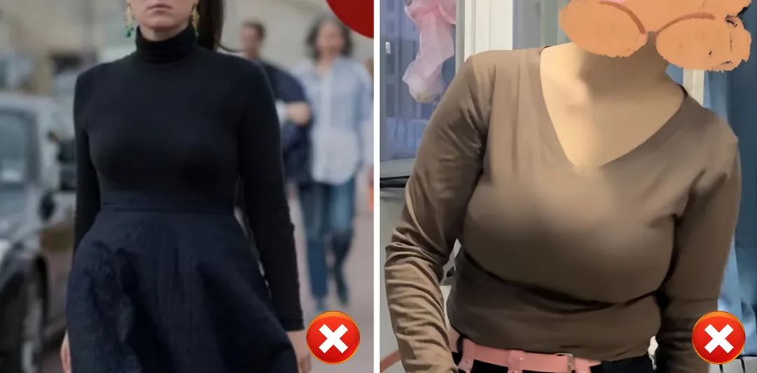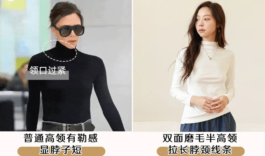 打底衫虽好,但要是买到这种太紧身暴露肉肉、太高领显得人窝窝囊囊的款,那可就另说了: