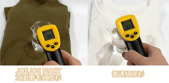 而我们的打底衫变成38℃,仅仅下降了8℃左右,保暖性不言而喻!