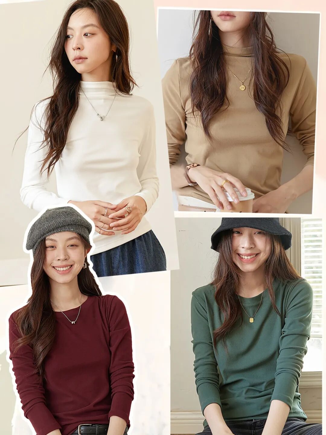 圆领/半高领都给大家做了8个颜色的纯色基本款: