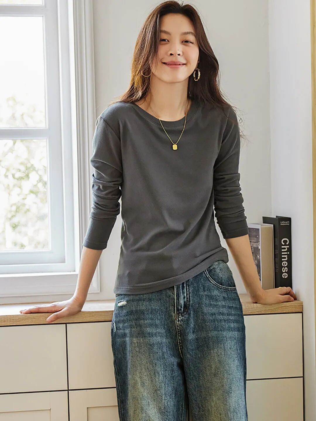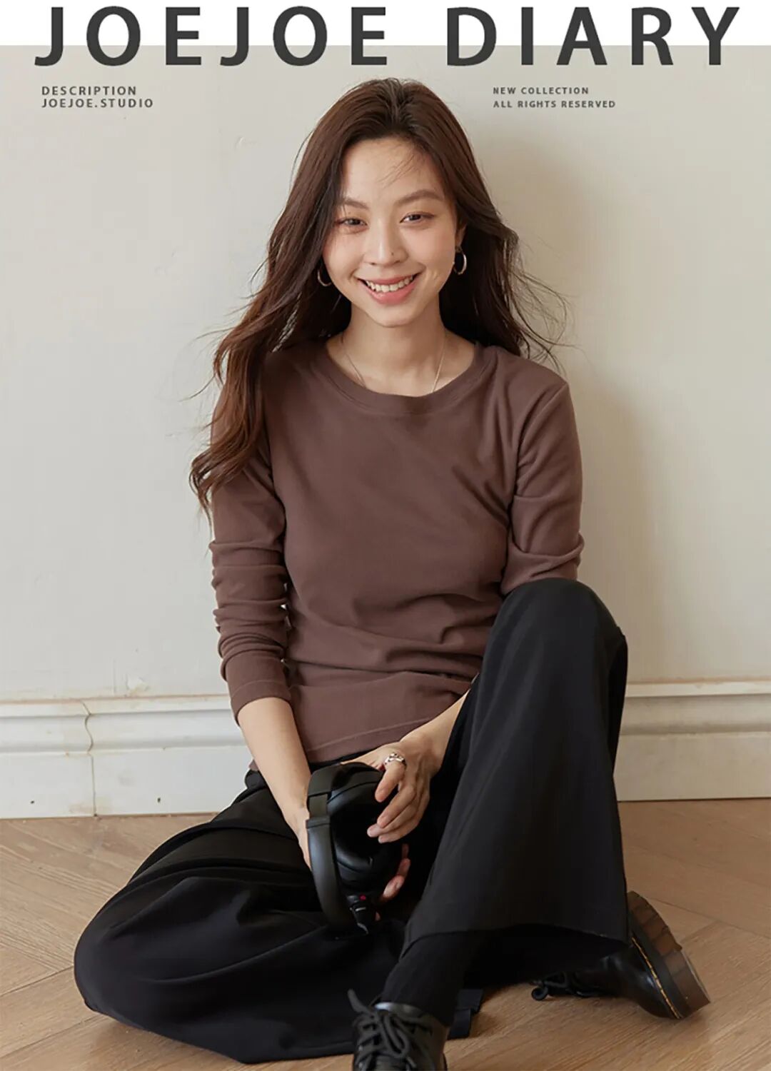简单版型的圆领打底衫就是最经典的,可以完美凸显天鹅颈,随时拿出来都好穿,上身就是轻氧感的慵懒调调。