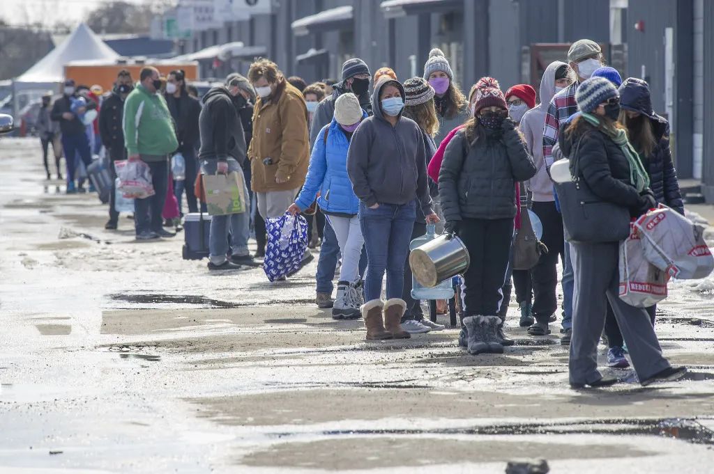 得州奥斯汀市,寒潮造成当地电力、供水中断多日,民众在啤酒厂外排长队取水