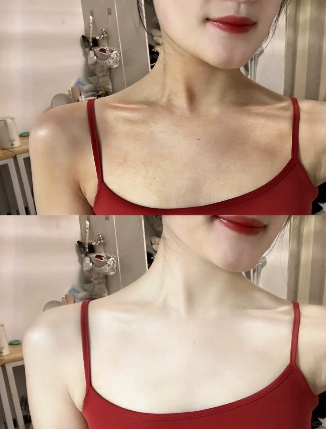 连晒黑的脖子跟身上的色差也越来越少,皮肤也变得通透~