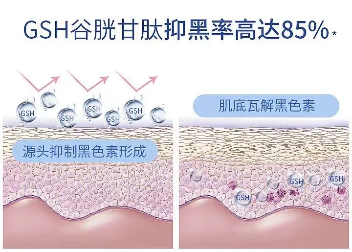二抑黑:谷胱甘肽,堵截黑色素转运到角质层,切断“生黑”通路