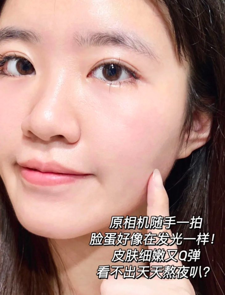 同事苏苏的熬夜脸,像直接打了柔光一样,素颜白净的像豆腐一样~