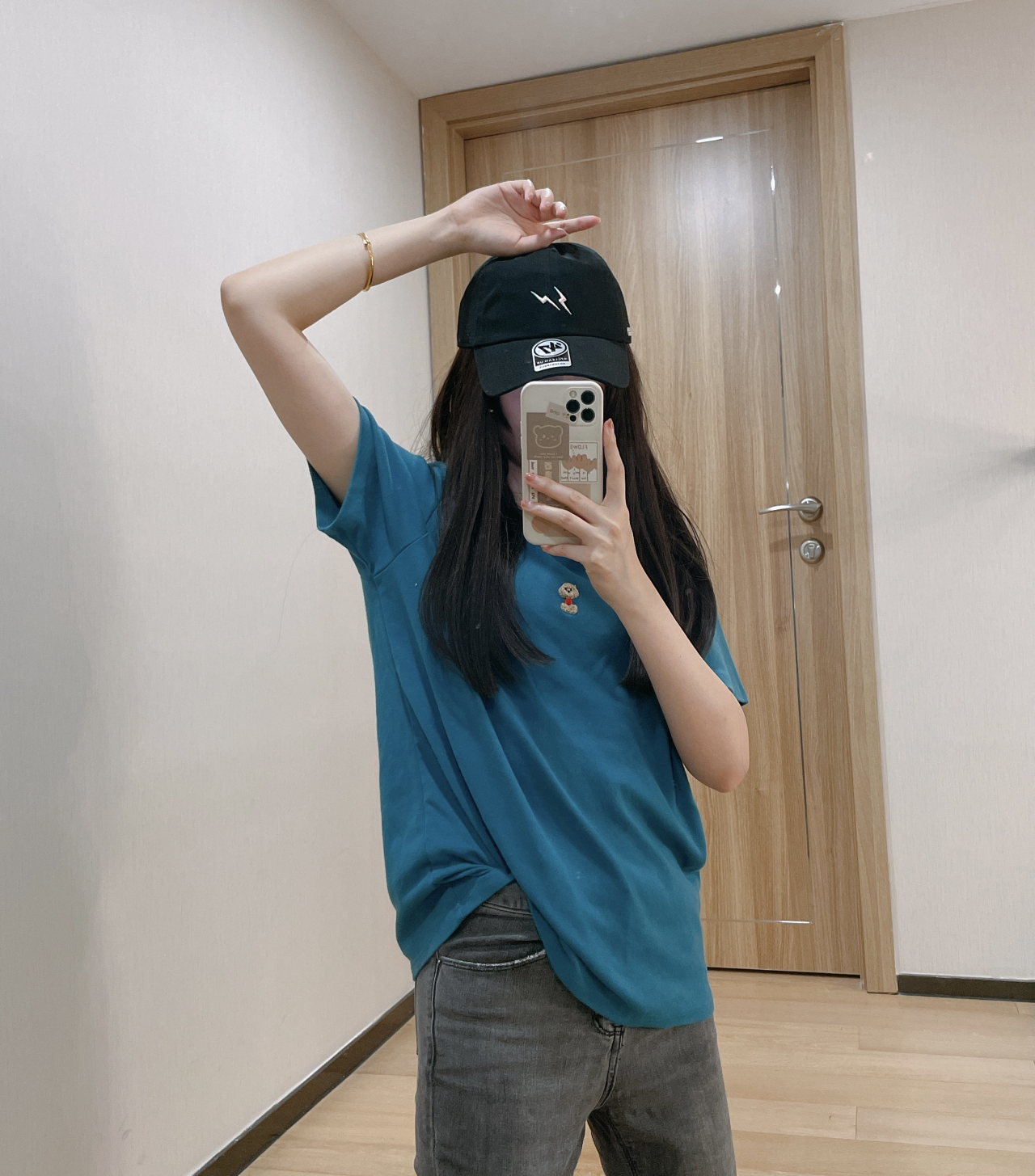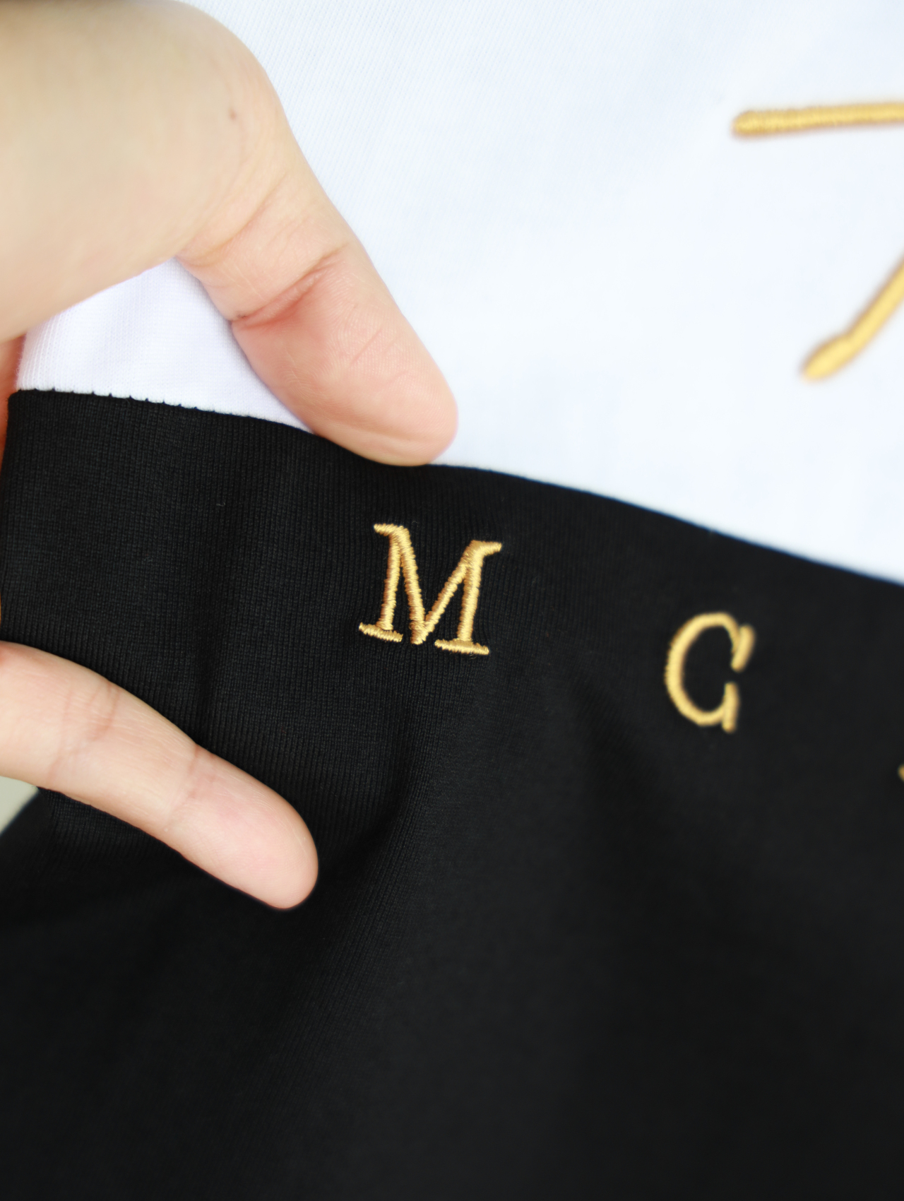 面料手感柔软,胸前撞色拼接,搭配上字母金线刺绣,