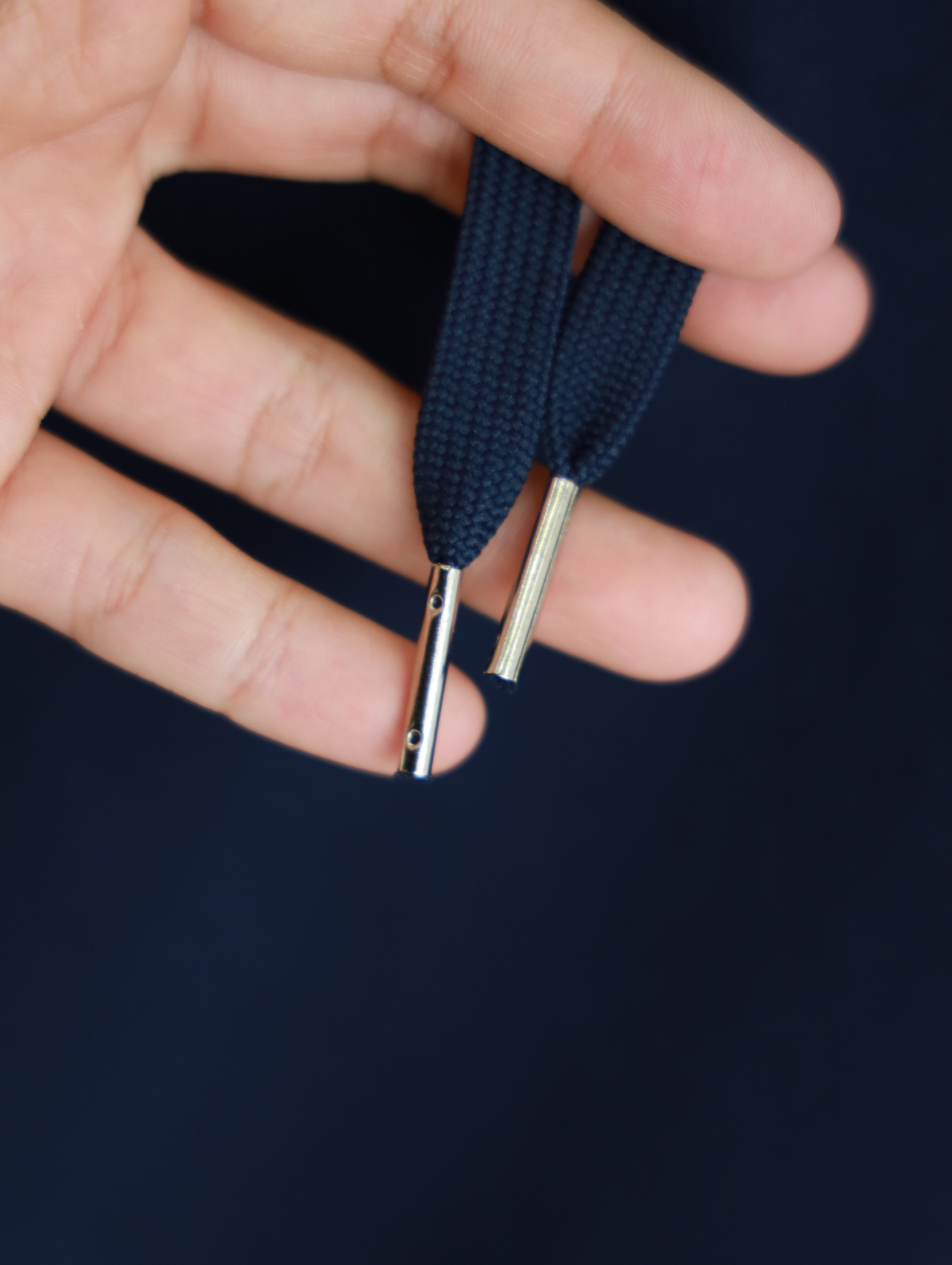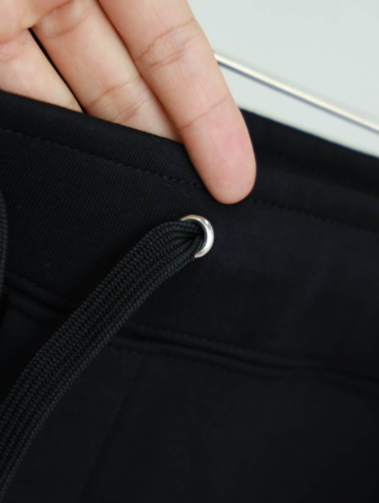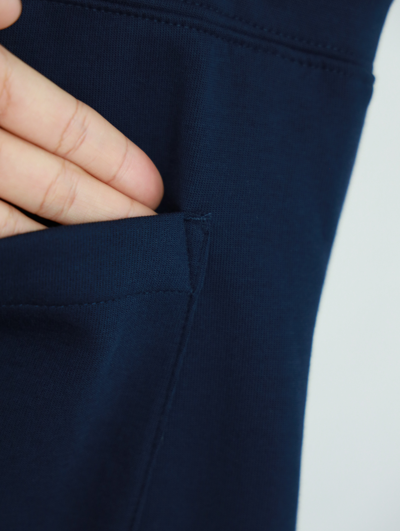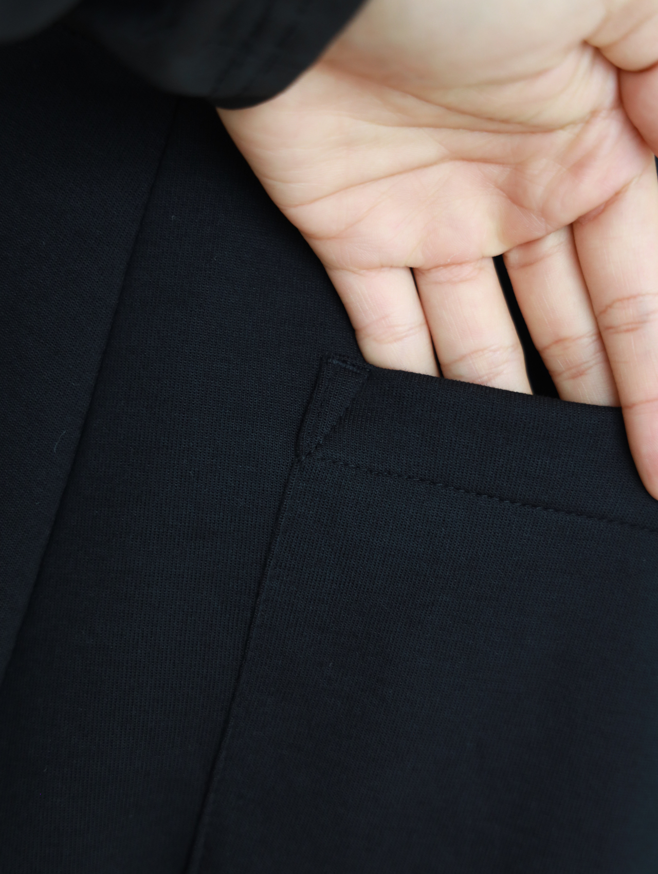 黑蓝两色,正面两个斜插袋,背面右侧有贴袋