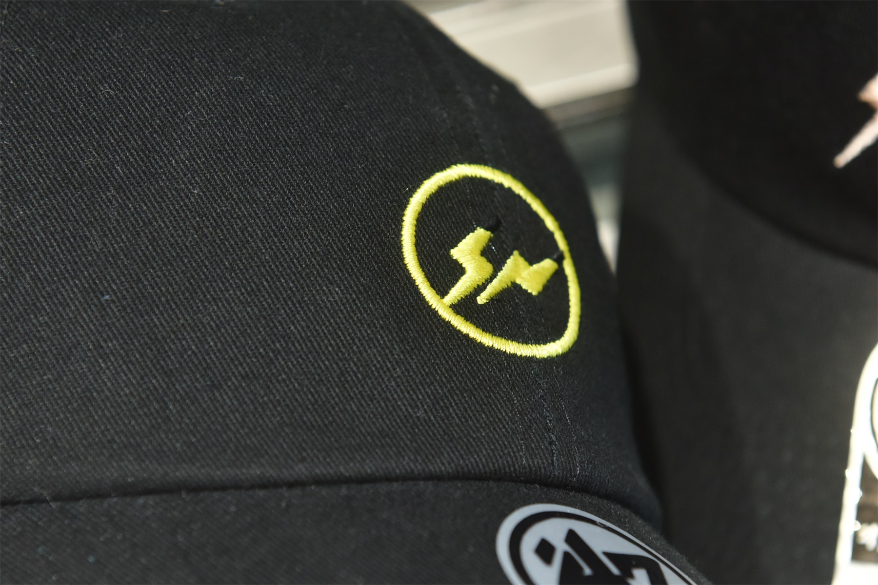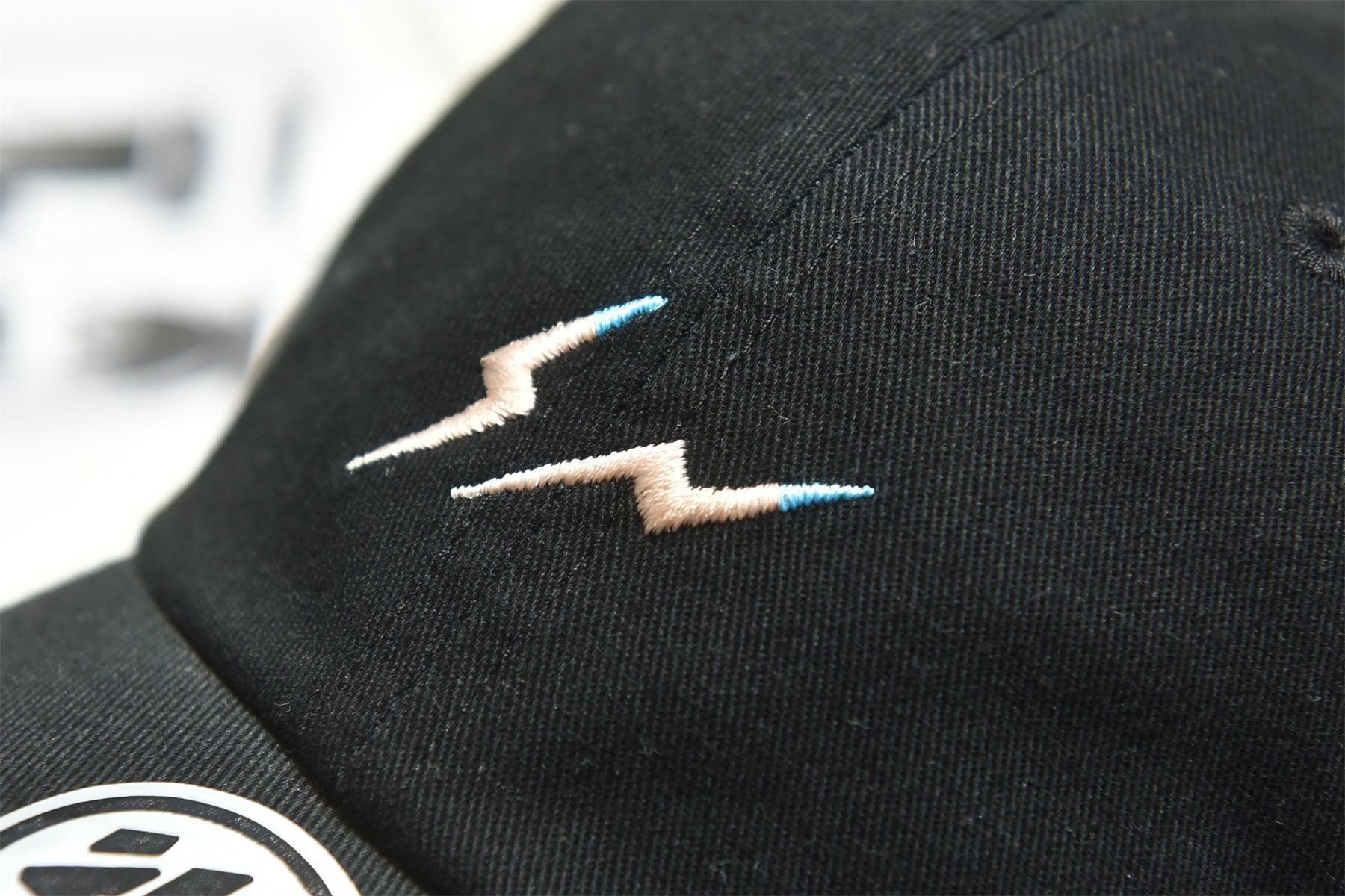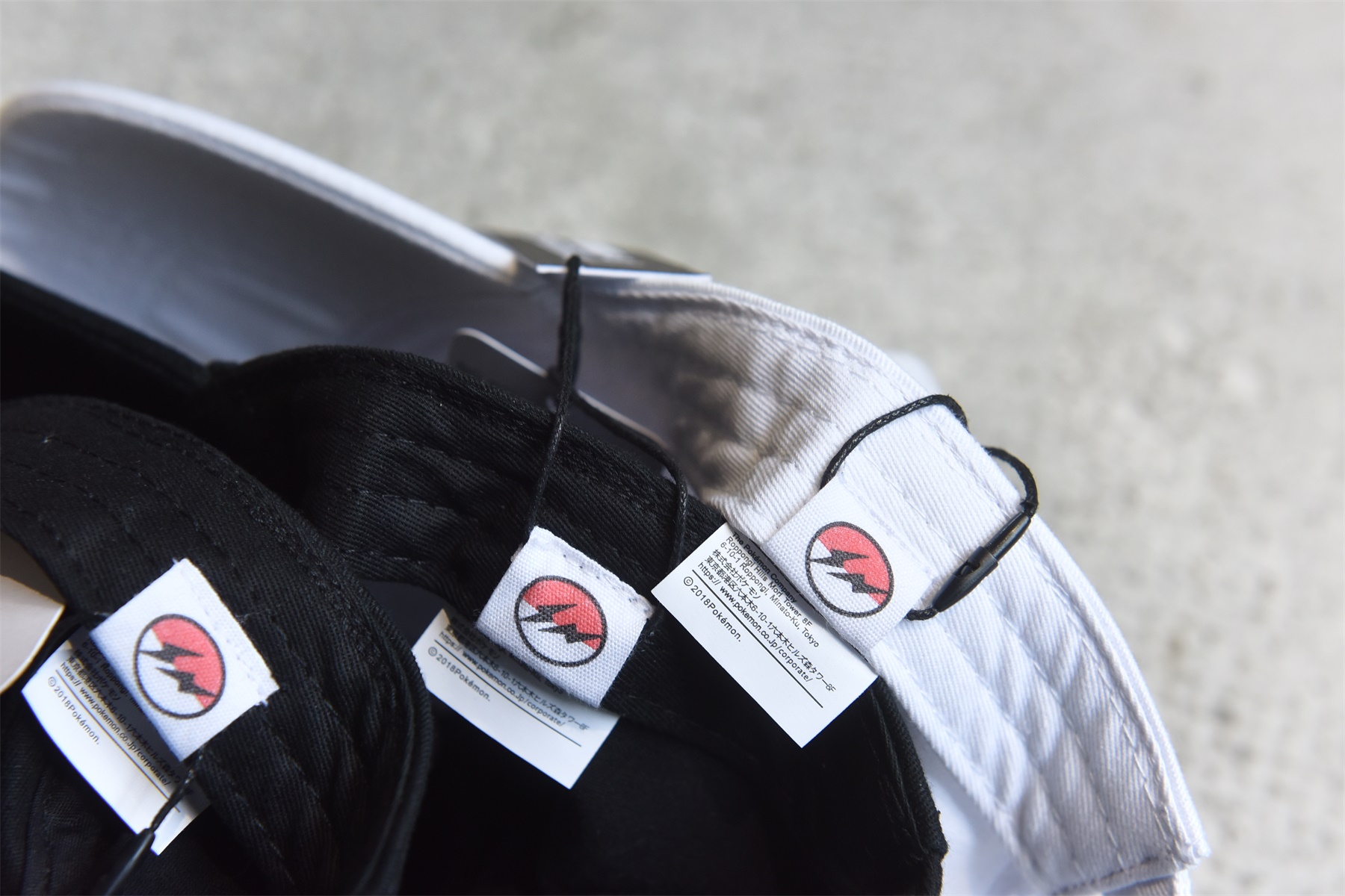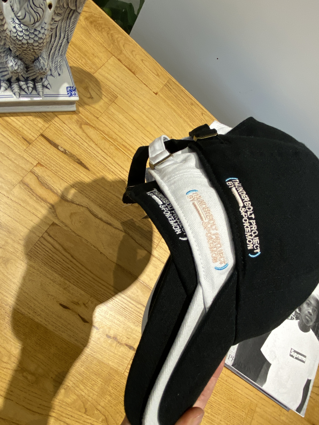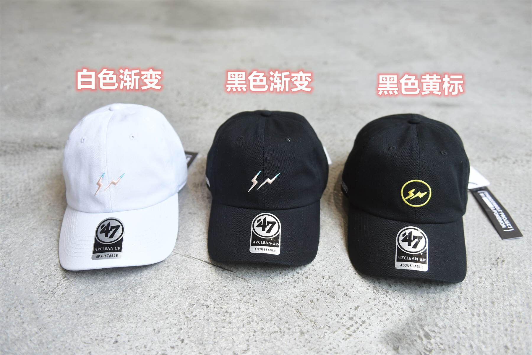 三色入!2个黑色 分别对应 金色渐变和白色渐变的闪电刺绣 ,白色的帽子也是配了白色渐变的刺绣。这个logo有P0kemon形象和Fr@gment Design的标志性设计合一的效果。