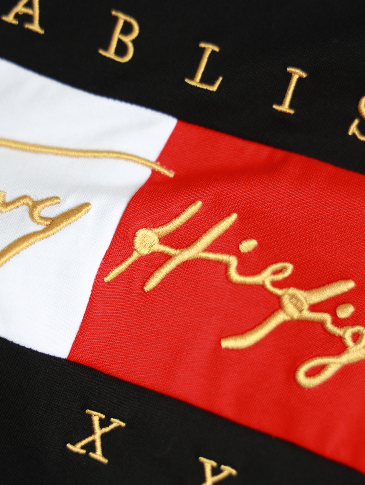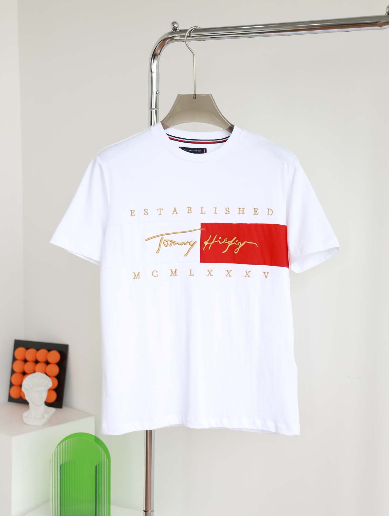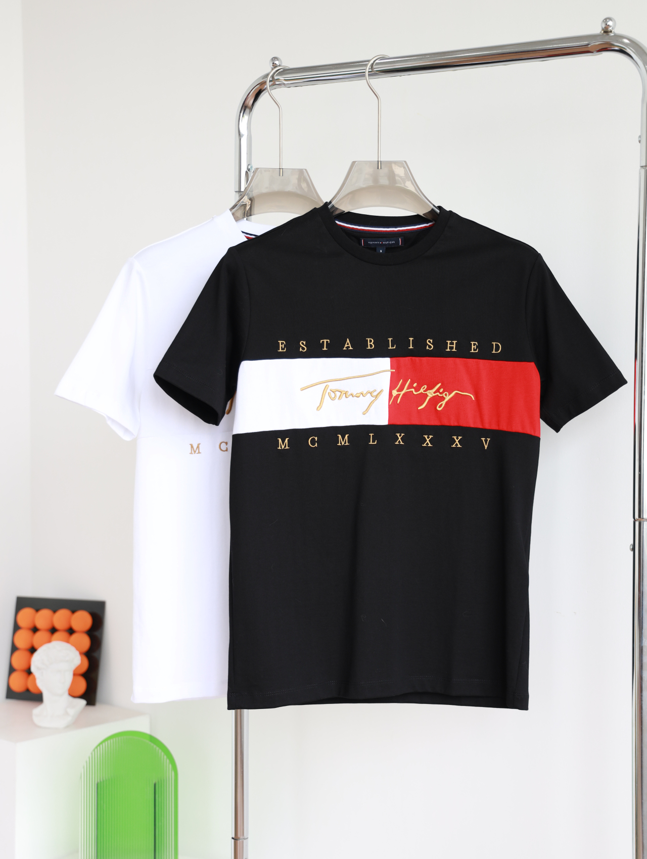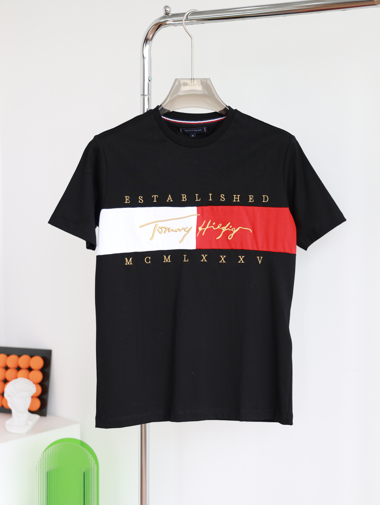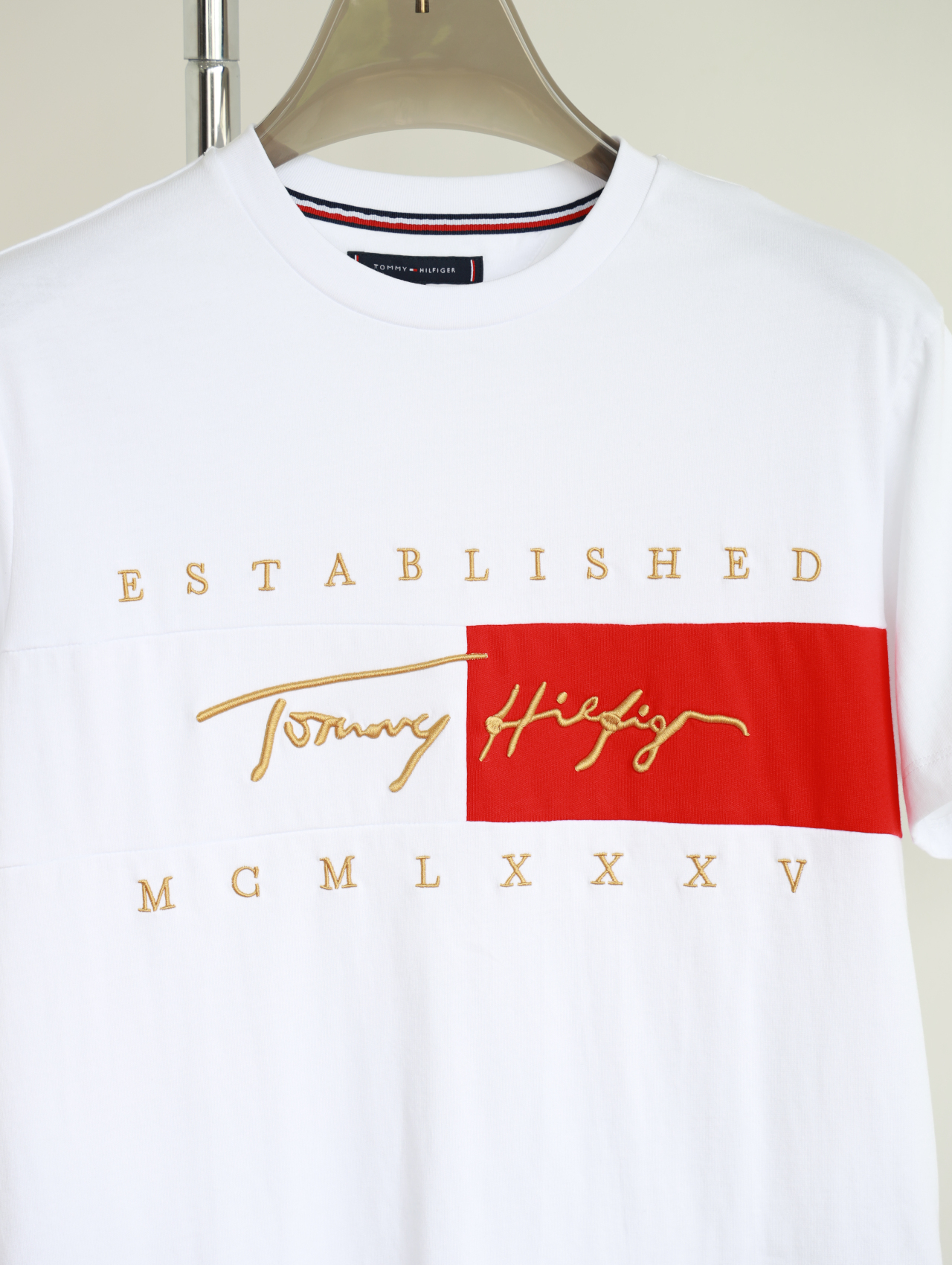 T.H 字母LOGO 重工草体刺绣 圆领短袖T恤